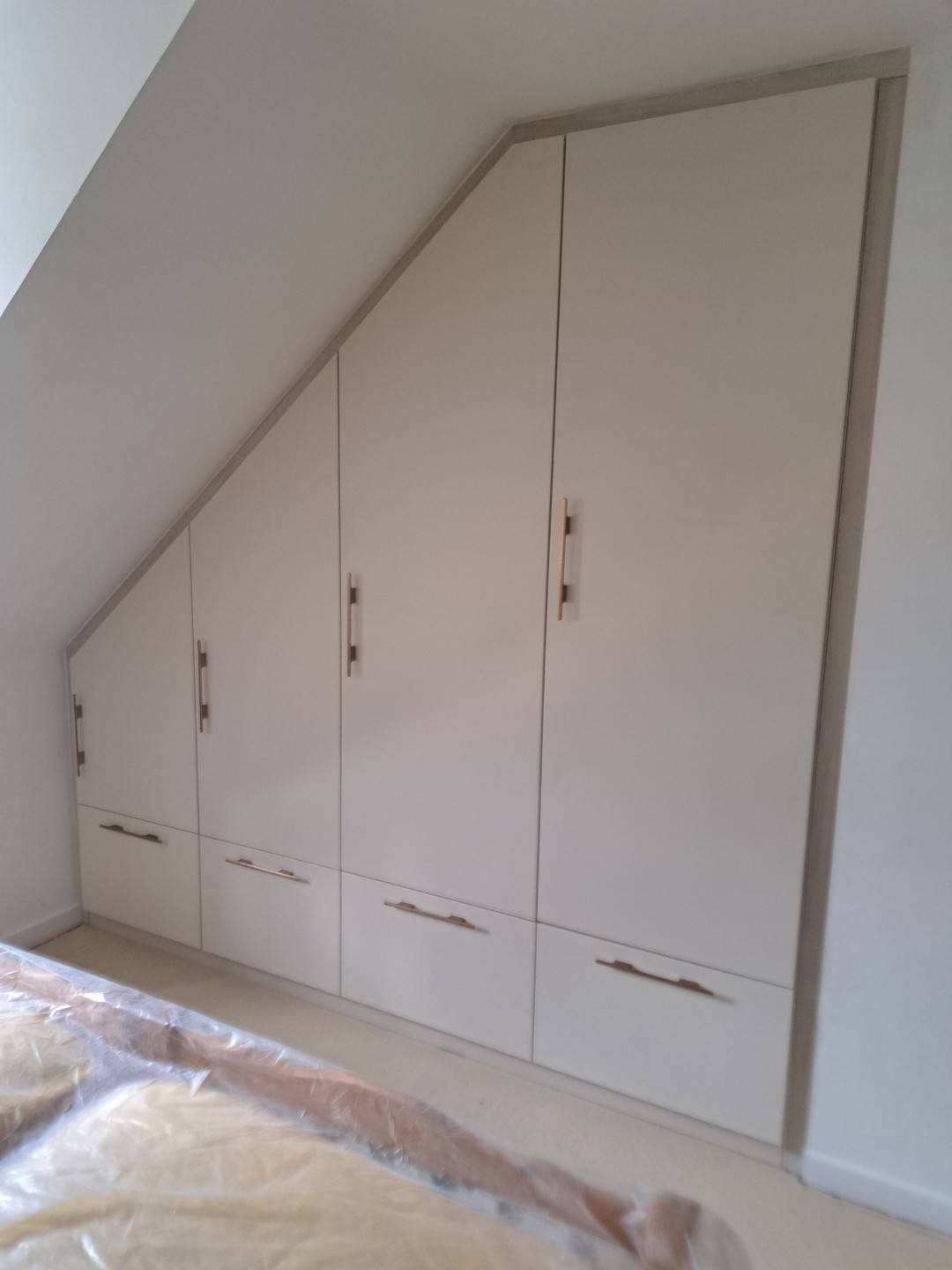 SD Menuiserie a récemment posé un aménagement sur mesure sous pente dans un appartement à Honfleur, offrant une solution pratique, esthétique et parfaitement adaptée à cet espace souvent difficile à exploiter.