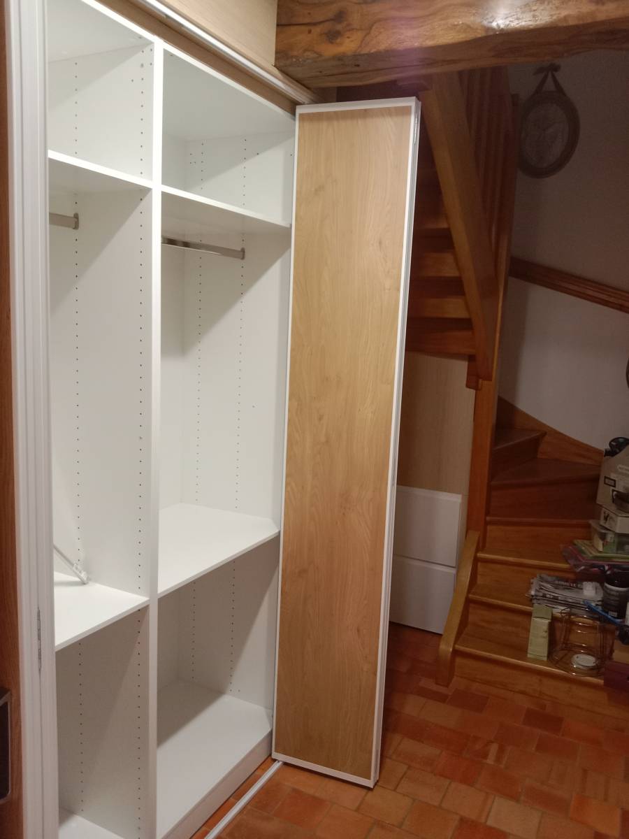L’installation finale, a transformé cet espace jusque-là sous-exploité en un élément utile et harmonieux de la maison. Le rendu s’intègre parfaitement à l’architecture intérieure, créant un effet d’ensemble cohérent et élégant.