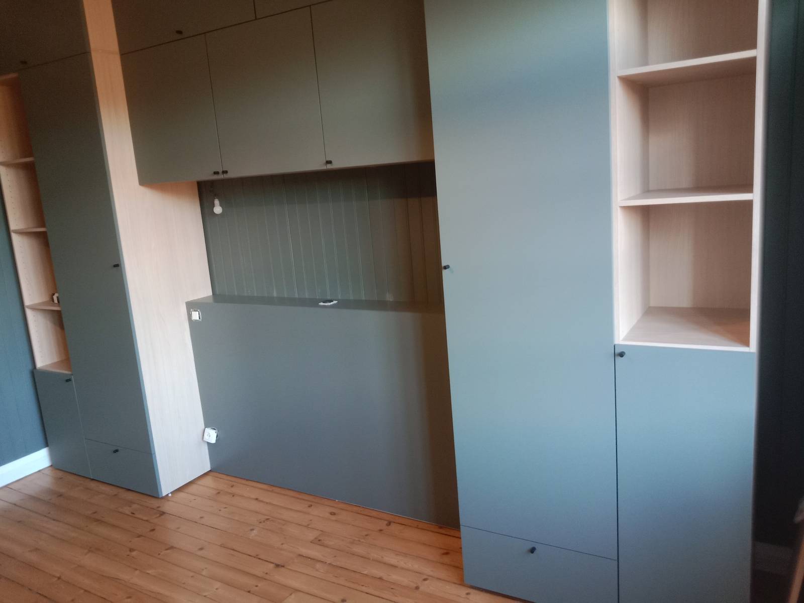 SD Menuiserie à réaliser la conception d’une tête de lit sur mesure dans une maison à Montivilliers, conçue pour répondre parfaitement aux attentes de son client.