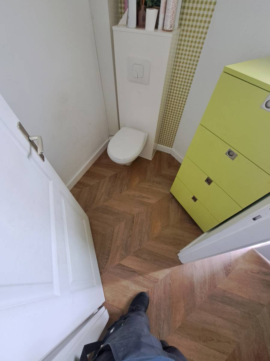 SD Menuiserie met en lumière tout son savoir-faire avec la pose d’un parquet en point de Hongrie dans une maison récente, apportant à l’ensemble une touche d’élégance intemporelle.