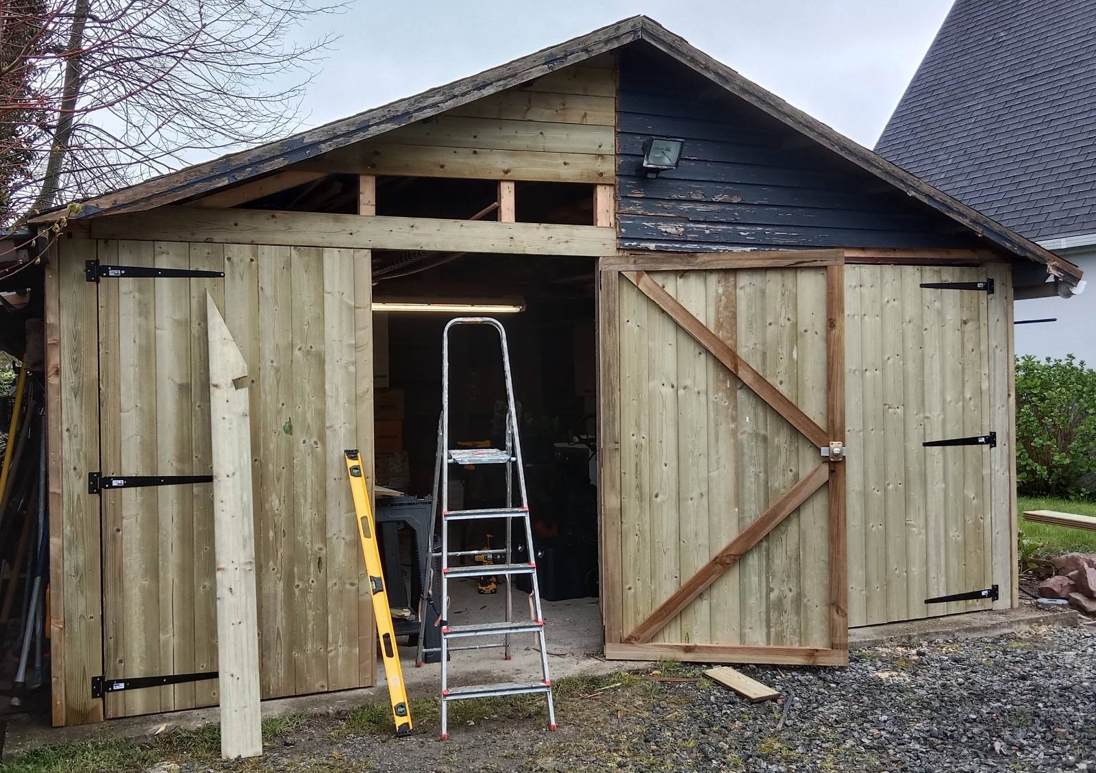 Par exemple sur ce chantier, nous avons déposer la façade complète, refait une ossature en sapin classe 2, et posé un bardage en clins autoclave classe 4.